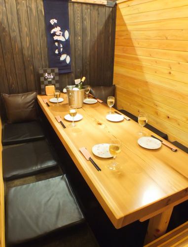 2~8名様用のテーブル・掘りごたつ個室です。予約が少ない日は2名様でゆったりお使い頂けます。個室なので、プライベート空間として楽しんで頂けます♪